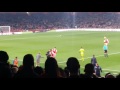 2골을 넣은 챔벌레인이 교체아웃될 때 관중들이 기립박수를 치고 있다.